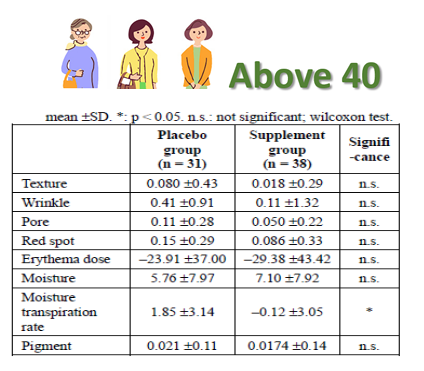 Clinical studies indicate taking URU TSUYA H61 as a probiotic supplement helps to reduce skin moisture transpiration rate for women of 40s and above.