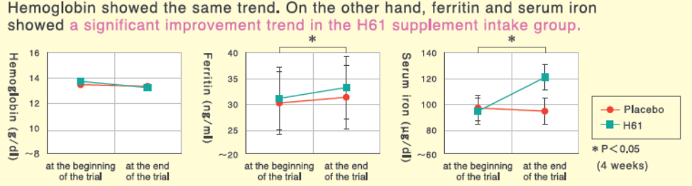 - Heat-killed sterilized H61 LL 30mg(0.15bil.) in 200mg tablet or placebo were administered twice a day in four weeks